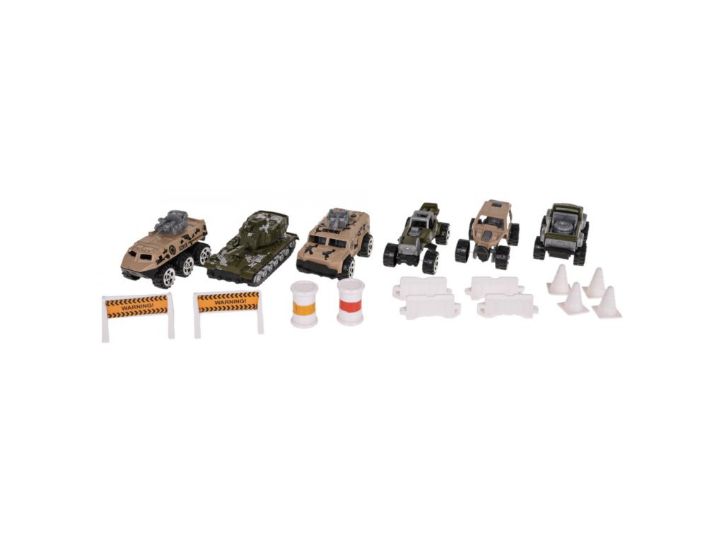 Cabina camionului are lumini pe laterale și butoane de sunet care, atunci când sunt apăsate, produc sunetul focului vehiculului, claxoane și o melodie veselă. Setul include accesorii precum 6 vehicule militare de jucărie, 2 butoaie, 4 conuri, 4 obstacole, 2 bariere de oprire.