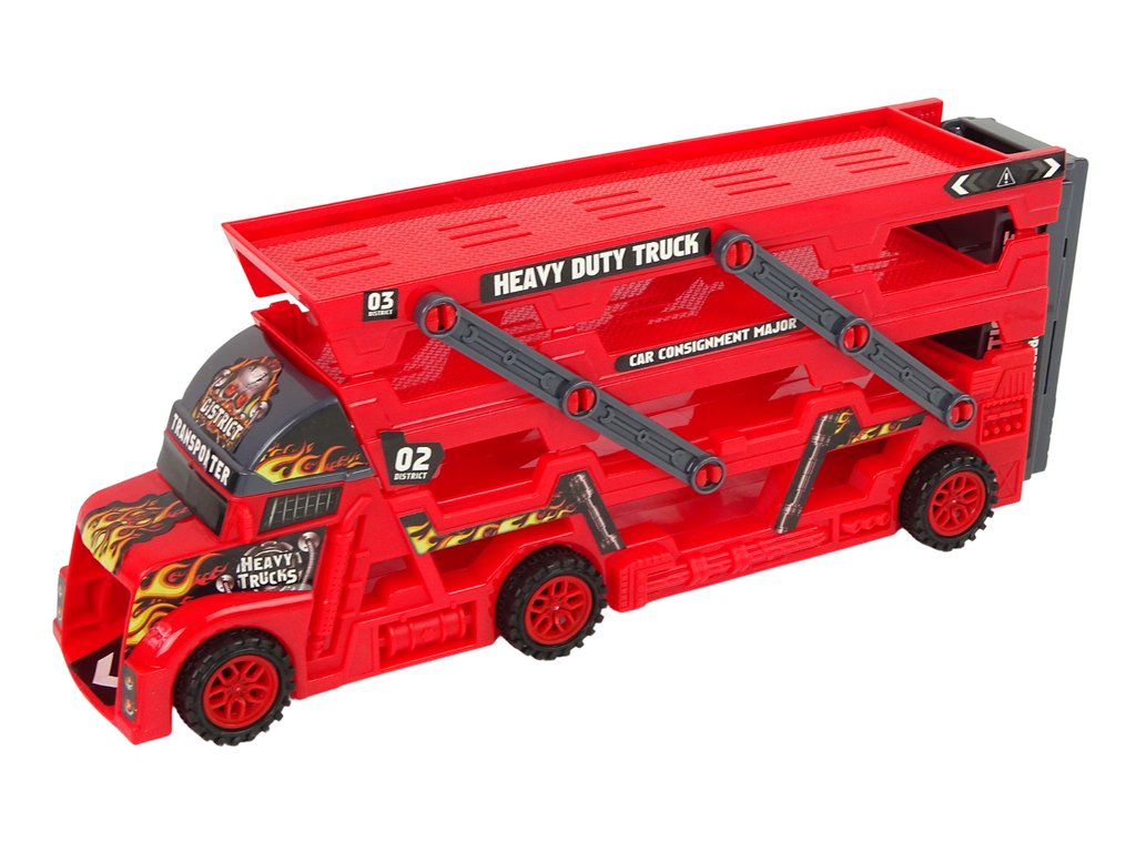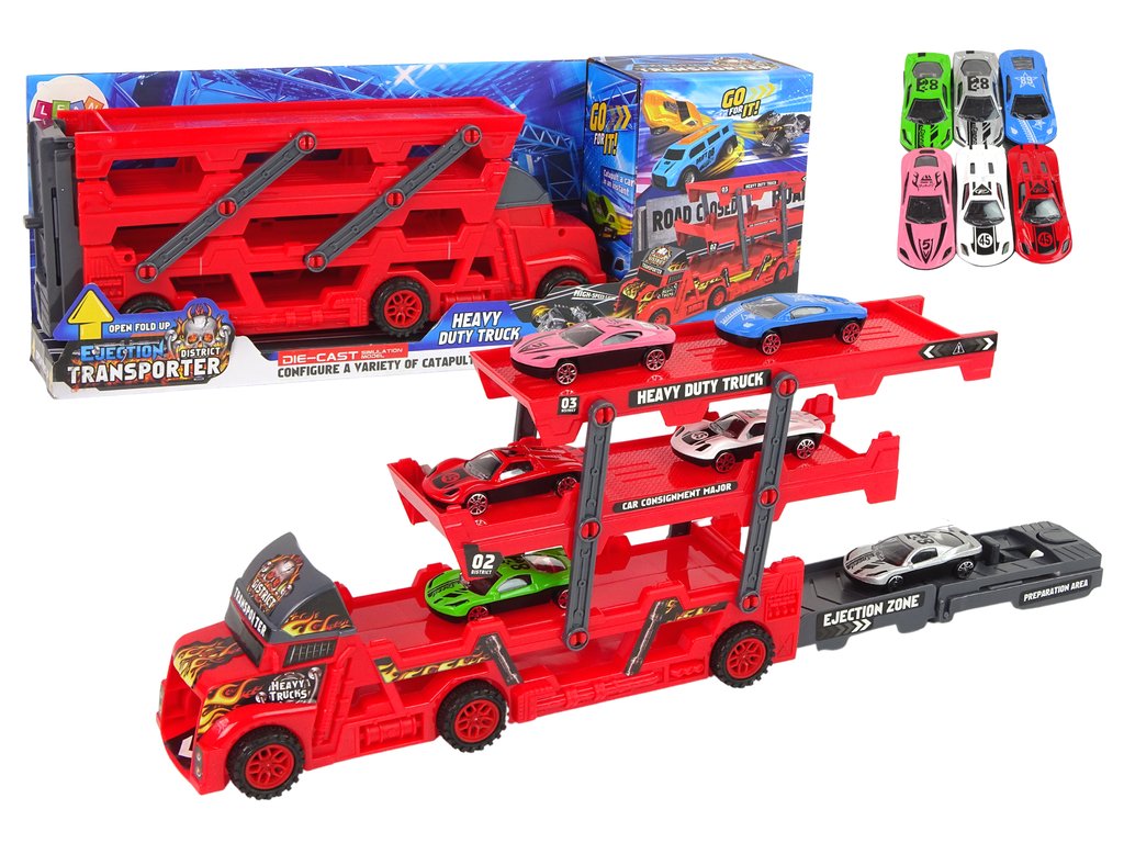 Acest transportor unic pentru 6 mașini este un adevărat răsfăț pentru fiecare mic fan al automobilismului. Acest cadou va oferi copilului tau ore de joaca creativa. Aspectul clasic al setului de remorcă colorat va stârni cu siguranță copilul dumneavoastră curiozitatea și interesul instantaneu pentru jucărie.