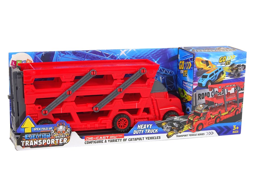 Camionul are un lansator încorporat pentru mașini de jucărie. Este realizat din materiale de cea mai înaltă calitate. În plus, are certificate de siguranță, astfel încât să fii sigur că copilul tău se va putea juca cu remorca.