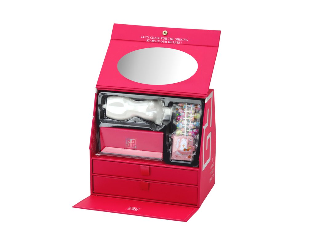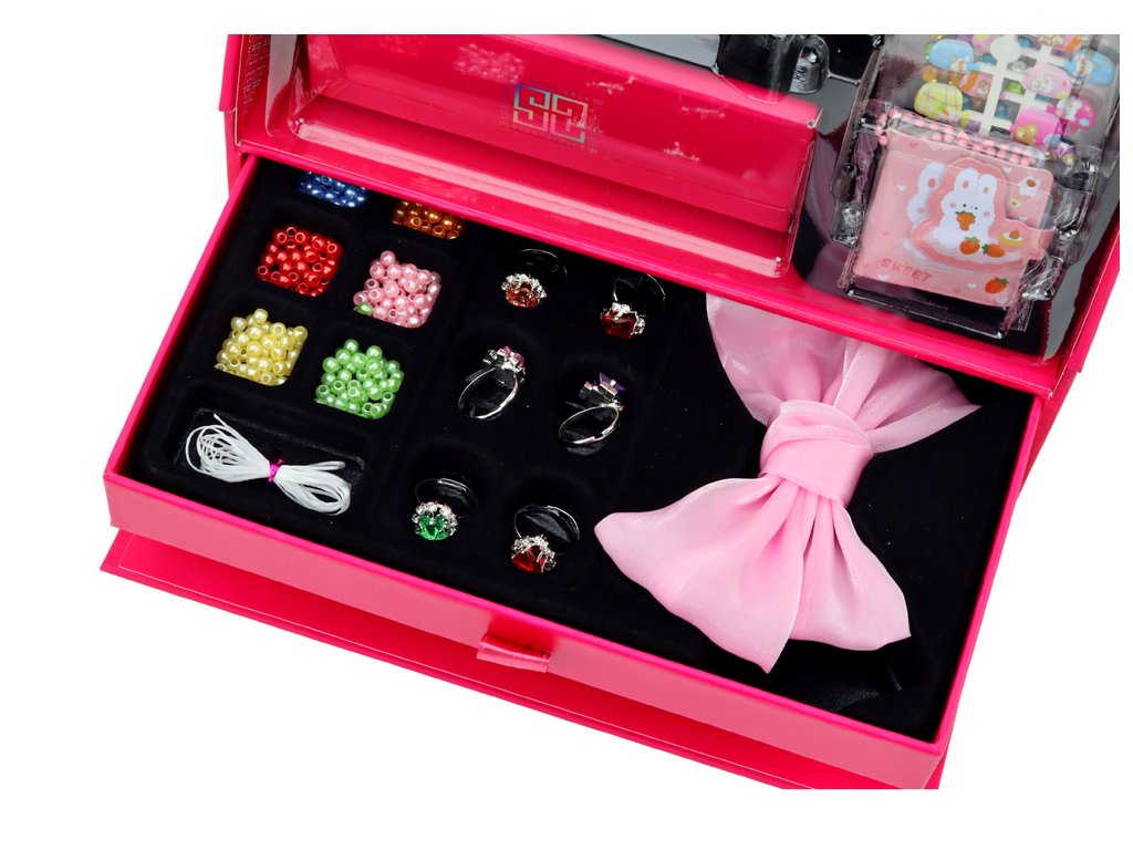 Totul este închis într-o carcasă mare roz, care nu numai că stochează comorile, dar încurajează și jocul și descoperirea. Setul de cosmetice creative nu este doar un instrument de creație, ci și un spațiu magic care inspiră și încurajează imaginația, permițând copiilor să se exprime prin artă și modă.