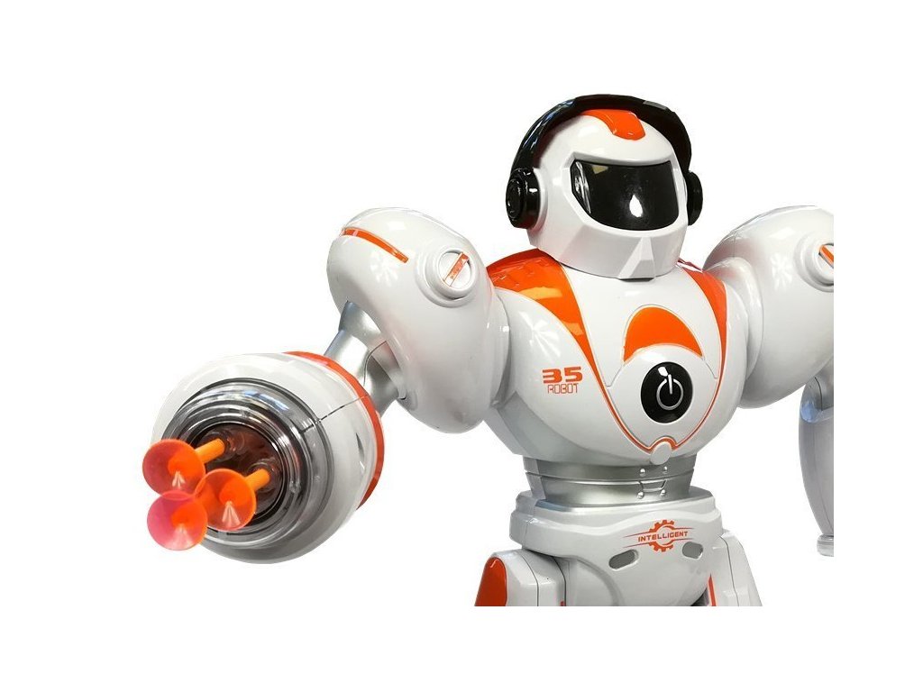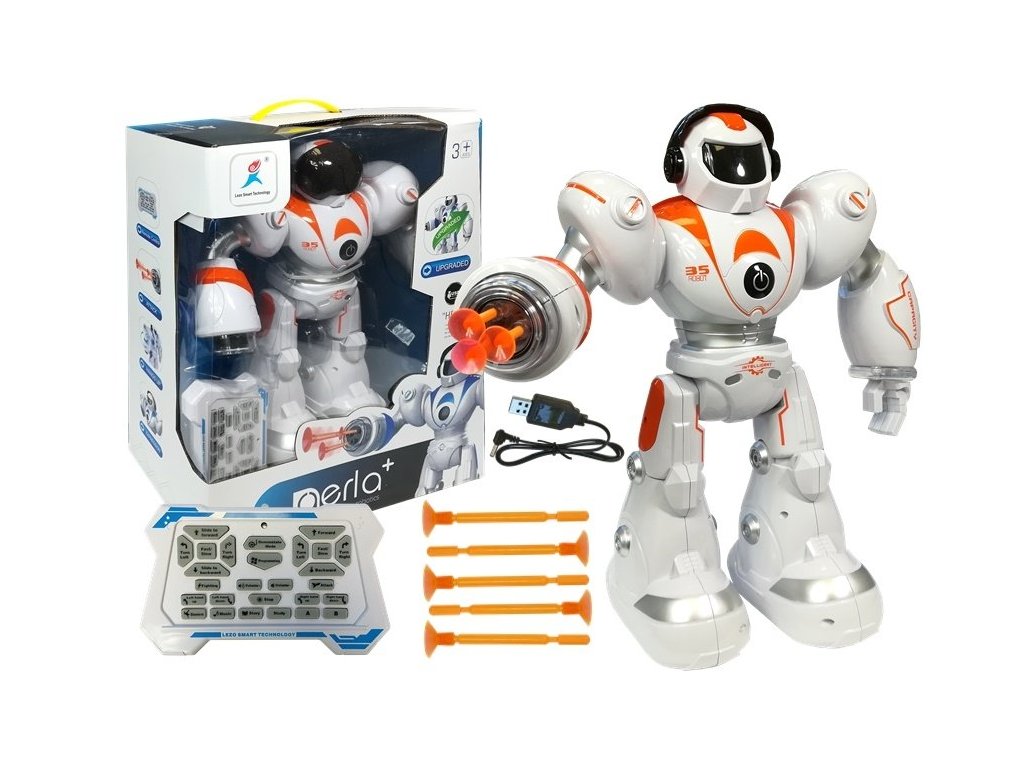 Efectul sonor este adaptat tuturor mișcărilor robotului. Robotul nu necesita baterii, are o baterie incorporata pe care o puteti incarca de ex. prin computer folosind cablul USB inclus. Bateria va reduce semnificativ costurile de operare și vă va permite să vă bucurați de jucărie mai mult timp.