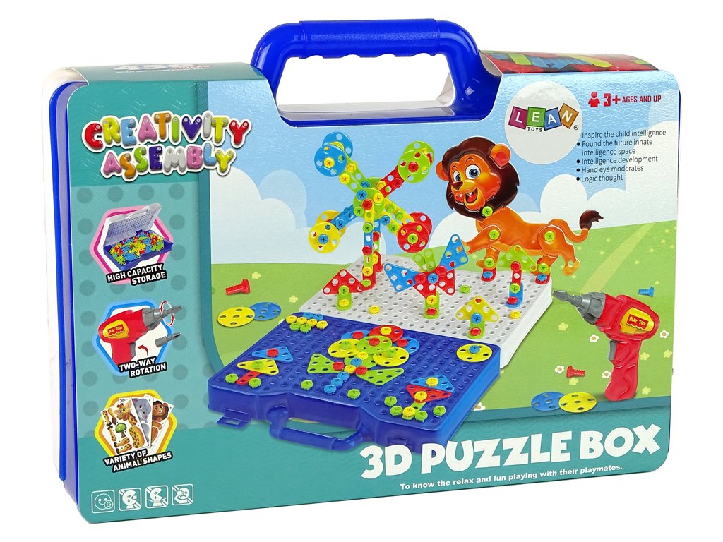 Setul include șuruburi în diferite culori (verde, roșu, albastru, portocaliu) și chei colorate, o șurubelniță și feronerie. Puzzle-urile sunt în 4 forme și 4 culori, ceea ce oferă posibilități uriașe de a crea clădiri și alte capodopere atât în versiunea 3D, cât și în desenul clasic. Toate elementele setului sunt realizate din plastic de înaltă calitate.