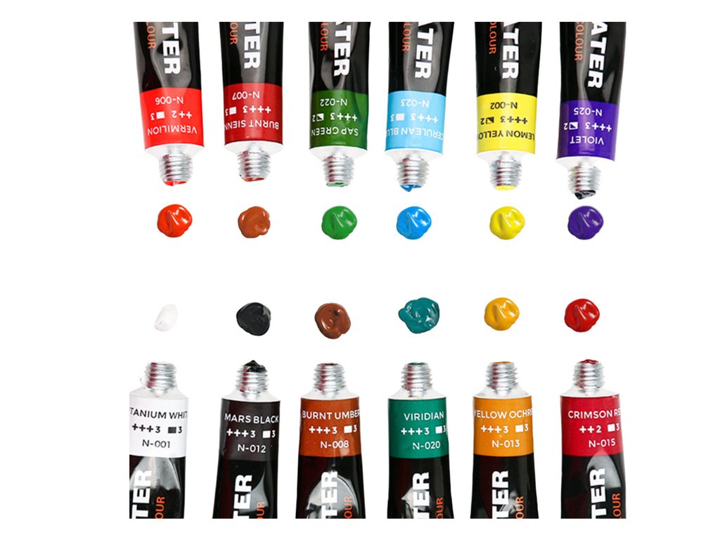 Un set de vopsele acrilice este visul oricărui artist devenit realitate. Conține 12 tuburi a câte 12 ml fiecare , ideale pentru proiecte de artă mici și mari. Culorile sunt versatile și pot fi folosite pe diferite suprafețe precum pânză, hârtie, lemn sau țesătură.
