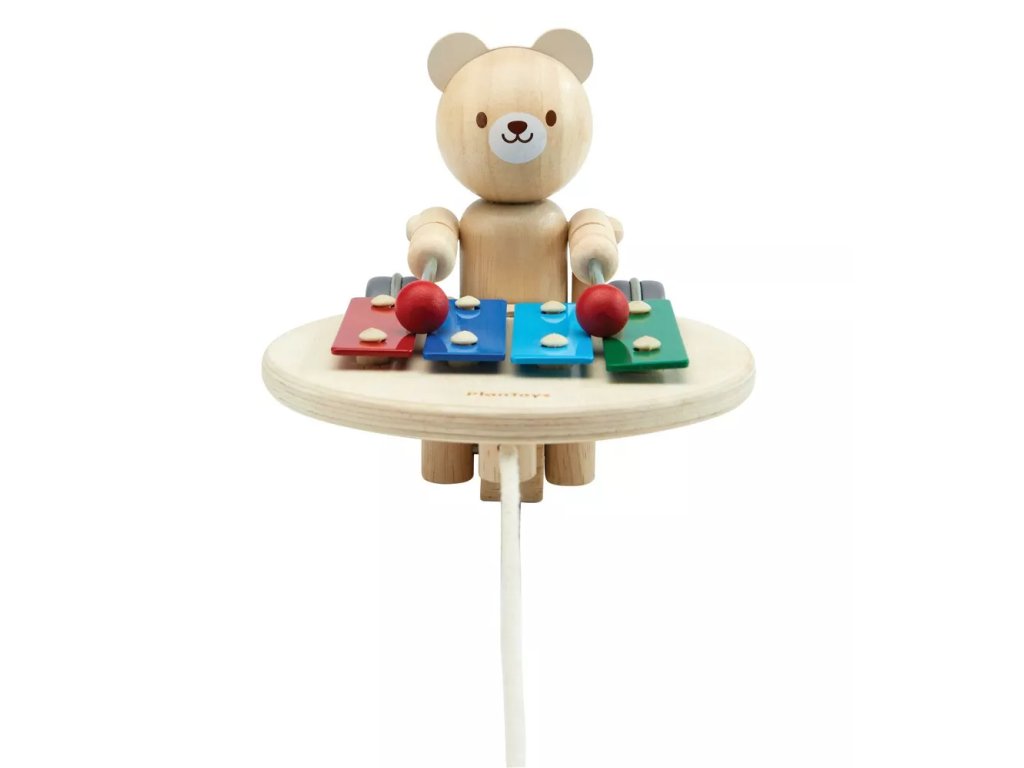 Ursulețul este prevăzut cu o sfoară cu care copilul îl trage. În timpul mișcării, lovește xilofonul, care scoate sunete și oferă stimulare auditivă. Prin rotirea frânghiei spre dreapta sau spre stânga, se schimbă orientarea xilofonului și locul de lovire a clavelor. Picioarele ursulețului se rotesc în timpul tragerii, creând impresia de „alergare”.