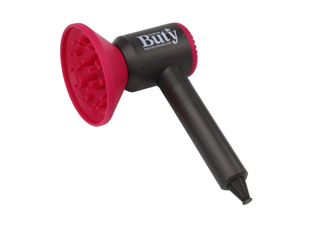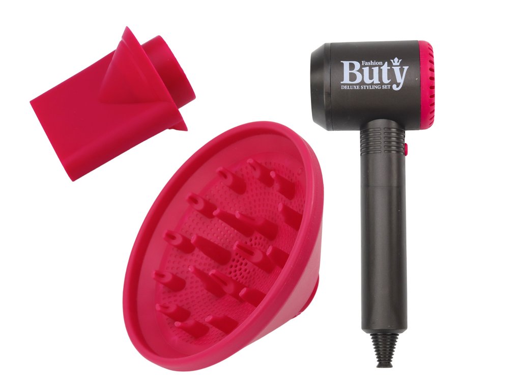 In pachetul cu uscatorul de par vei gasi doua varfuri de uscare: unul alungit, care este ideal pentru indreptarea parului, si un difuzor, care ajuta la realizarea undelor sau buclelor naturale. Datorită acestui instrument, copiii pot experimenta diferite coafuri și își pot crea propriul stil unic.