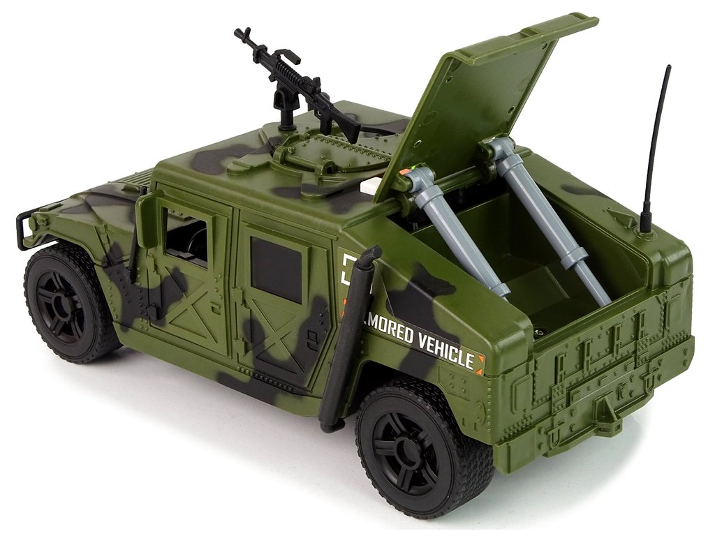 Acest vehicul militar este ideal pentru tinerii pasionați de militari care doresc să învețe despre echipamentele militare. Are un aspect autentic și detalii precum un pistol pe acoperiș care seamănă cu un adevărat vehicul al armatei.