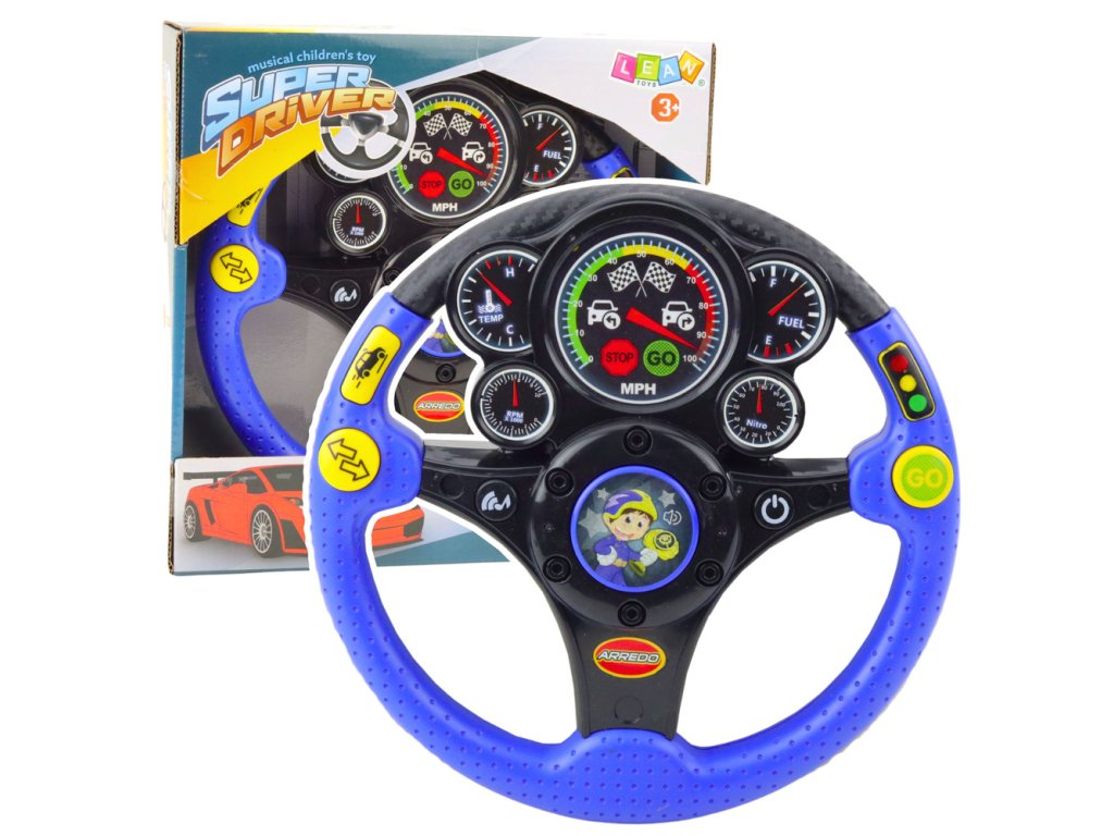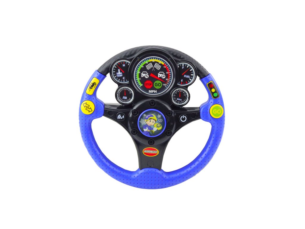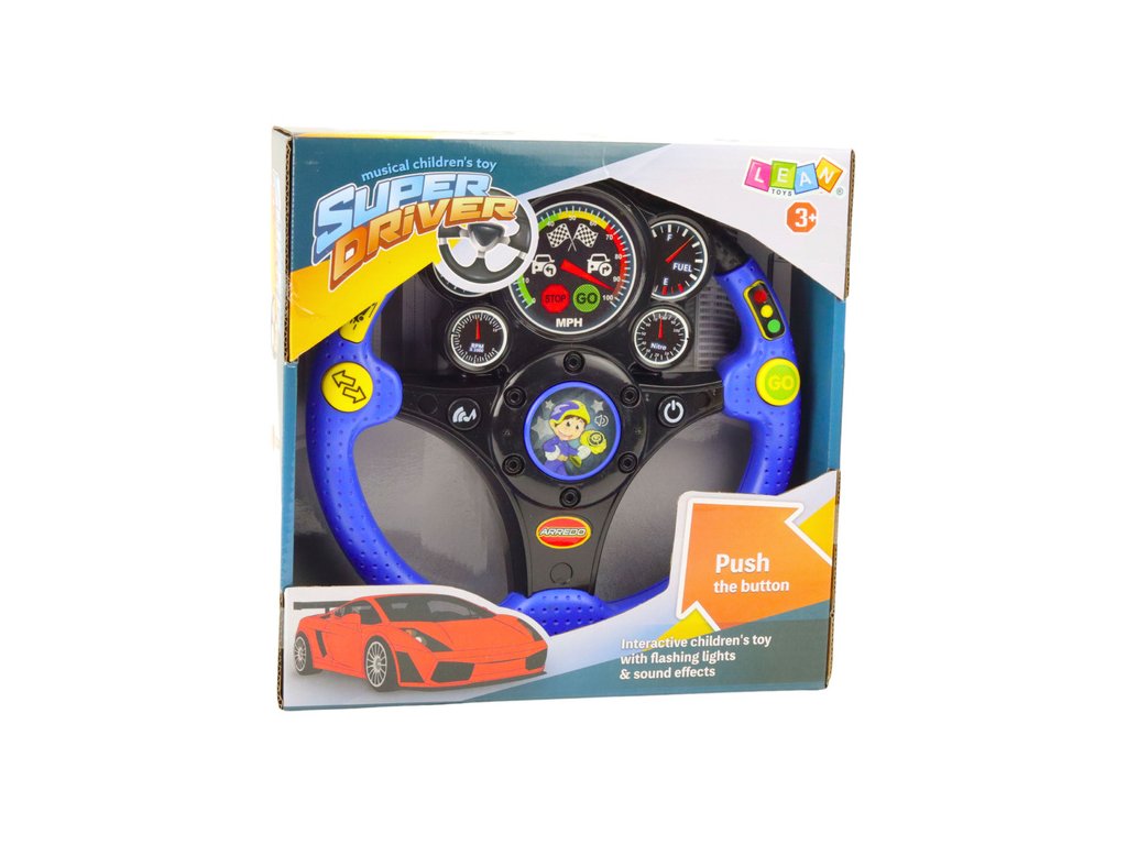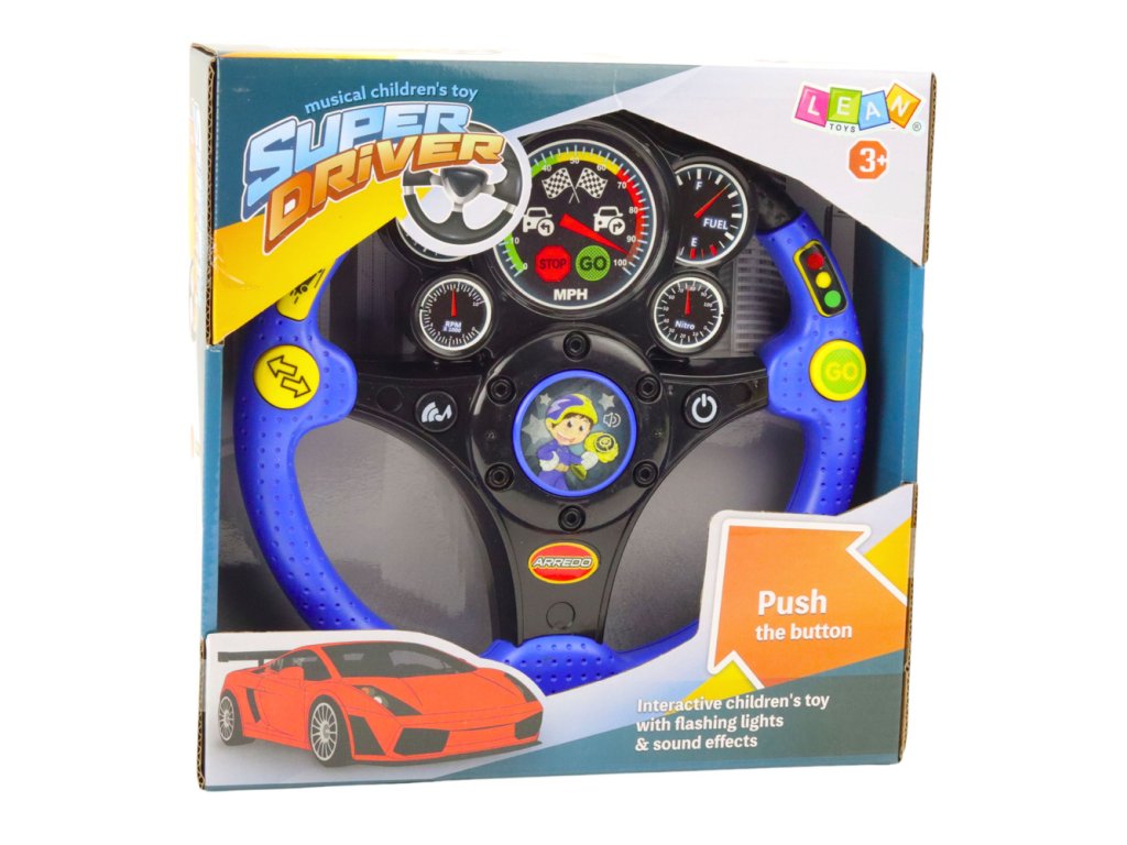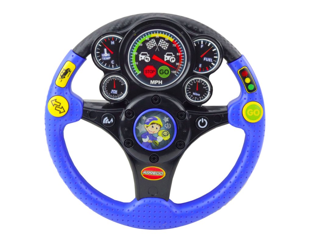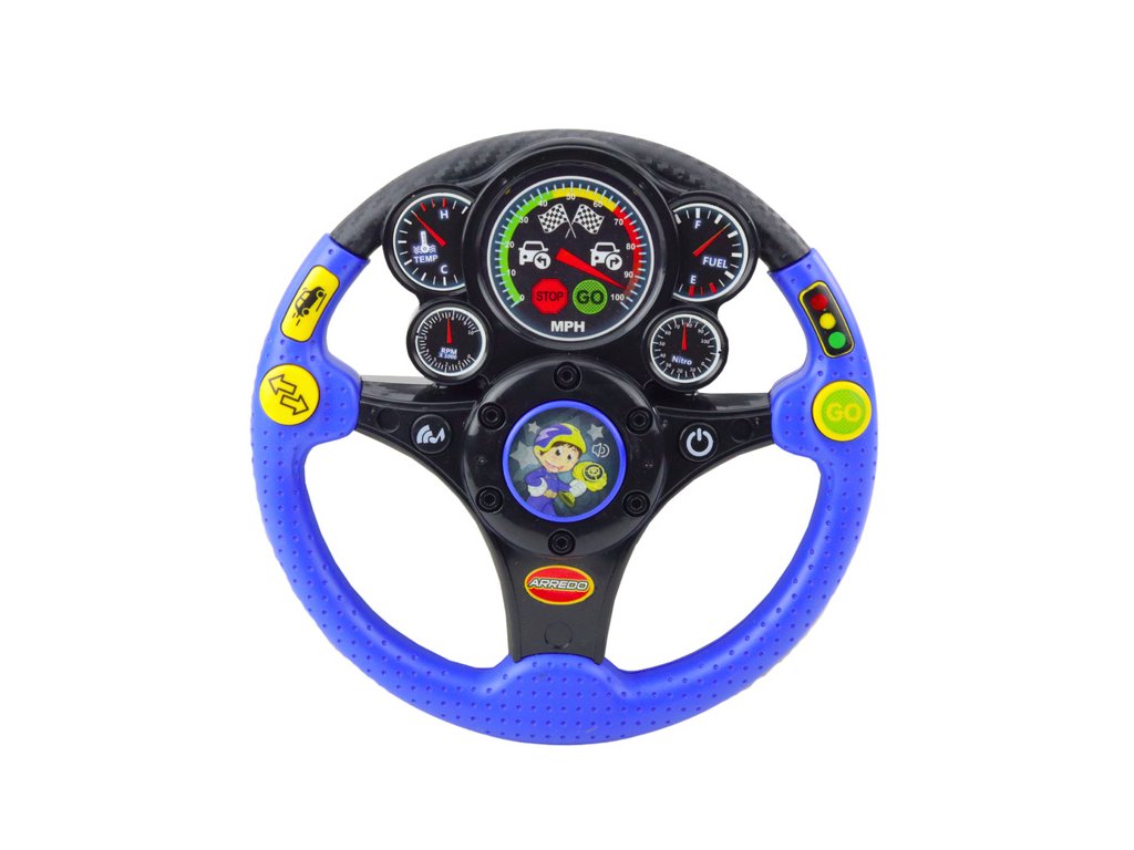 Volanul are 7 butoane funcționale , fiecare dintre ele activând efecte diferite - de la sunete ale motorului la lumini, melodii și vibrații. Butonul ON/OFF sub forma unui contact permite copilului să înceapă să se joace exact ca într-o mașină reală. Iluminarea care imită un ceas și vibrațiile realiste sporesc efectul de a fi în cabina mașinii. Jucăria este ideală pentru a sprijini dezvoltarea simțurilor, coordonarea mână-ochi și imaginația.