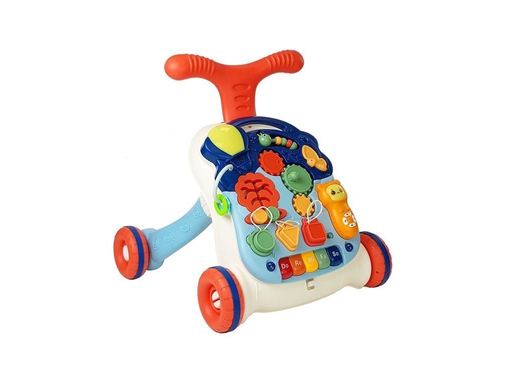 Premergatorul prezentat în combinație cu panoul de predare afectează nu numai învățarea mersului, ci susține și limbajul, dezvoltarea senzorială și motrică a copilului și învață forme, cifre și litere.