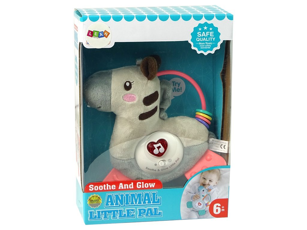 Zebra vorbitoare este acoperită cu material plăcut la atingere. Are 3 butoane și fiecare scoate un sunet diferit. Floarea verde face sunete naturii, inima roșie va ajuta copilul să adoarmă deoarece are o melodie în ea, iar cercul albastru scoate sunete amuzante. Zebra va servi nu numai ca animal favorit de pluș, ci va permite copilului să exploreze lumea din jurul lui.