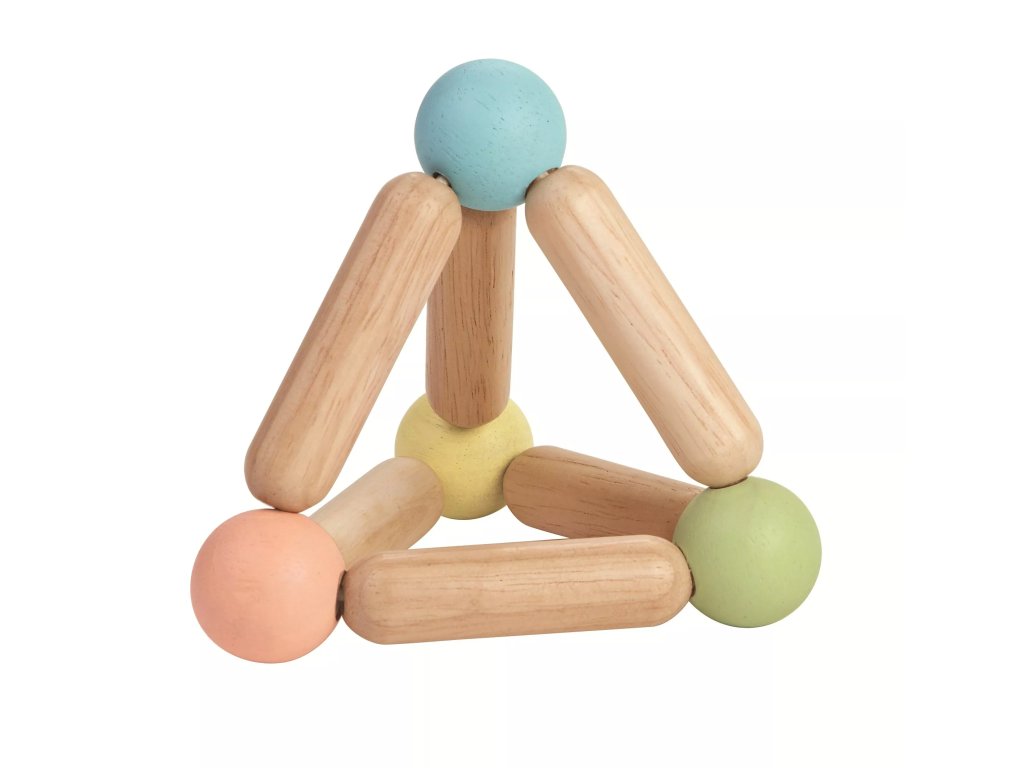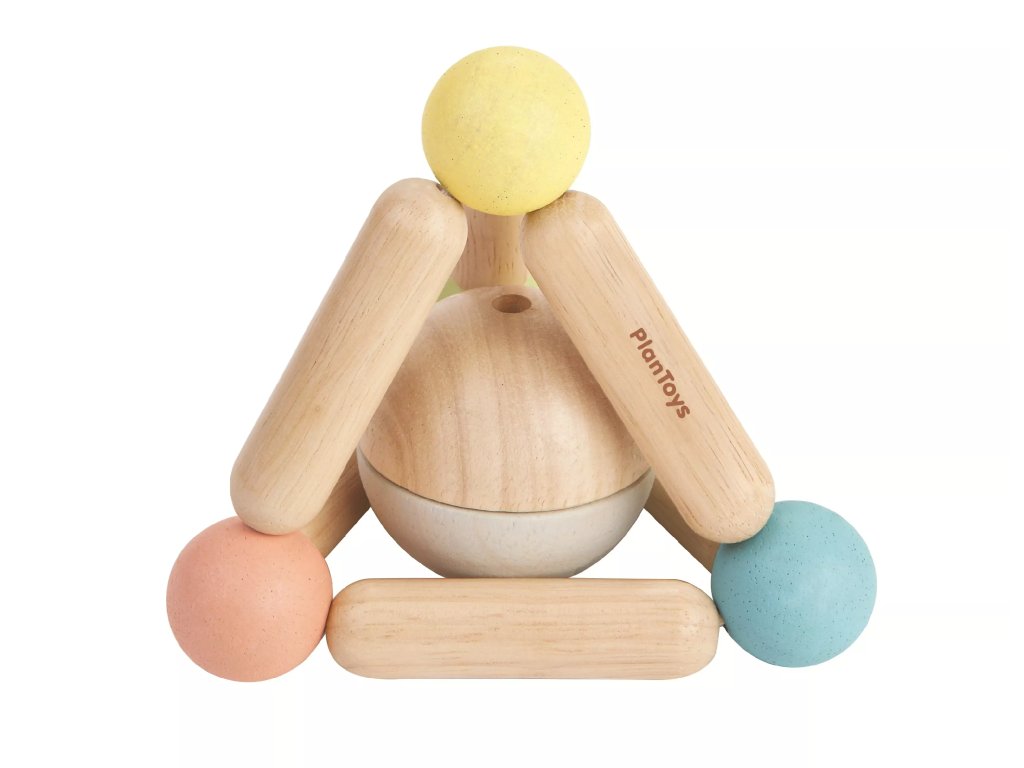 Zornăitoare flexibilă de modelat în formă de piramidă poate fi îndoită liber și se potrivește bine în mâna unui copil mic. În mijloc se află o bilă de lemn care scoate un sunet în două tonuri.